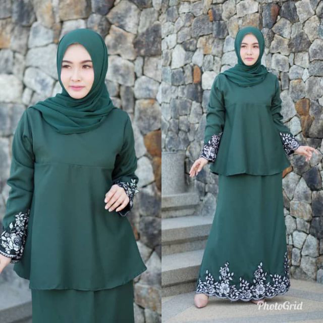 Dusty pink maroon honeydew navy blue emerald green size. Manakala kainnya berpotongan A A cut dengan perincian getah dan zip pada bahagian pinggang kain. Buy saree baju kurung in shawlpublika.
